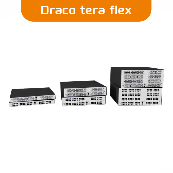Draco-tera flex矩阵交换系列具有1、2或4RU的紧凑尺寸和多达160个端口,旨在支持中小型应用和大型应用。