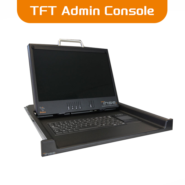 Draco TFT 管理控制台是一款集显示器、键盘与触摸板于一体的KVM控制单元,专为服务器机架或计算机柜安装设计。该设备可便捷接入 Draco tera 企业级 KVM 矩阵系统,实现高效的监控管理与控制。
